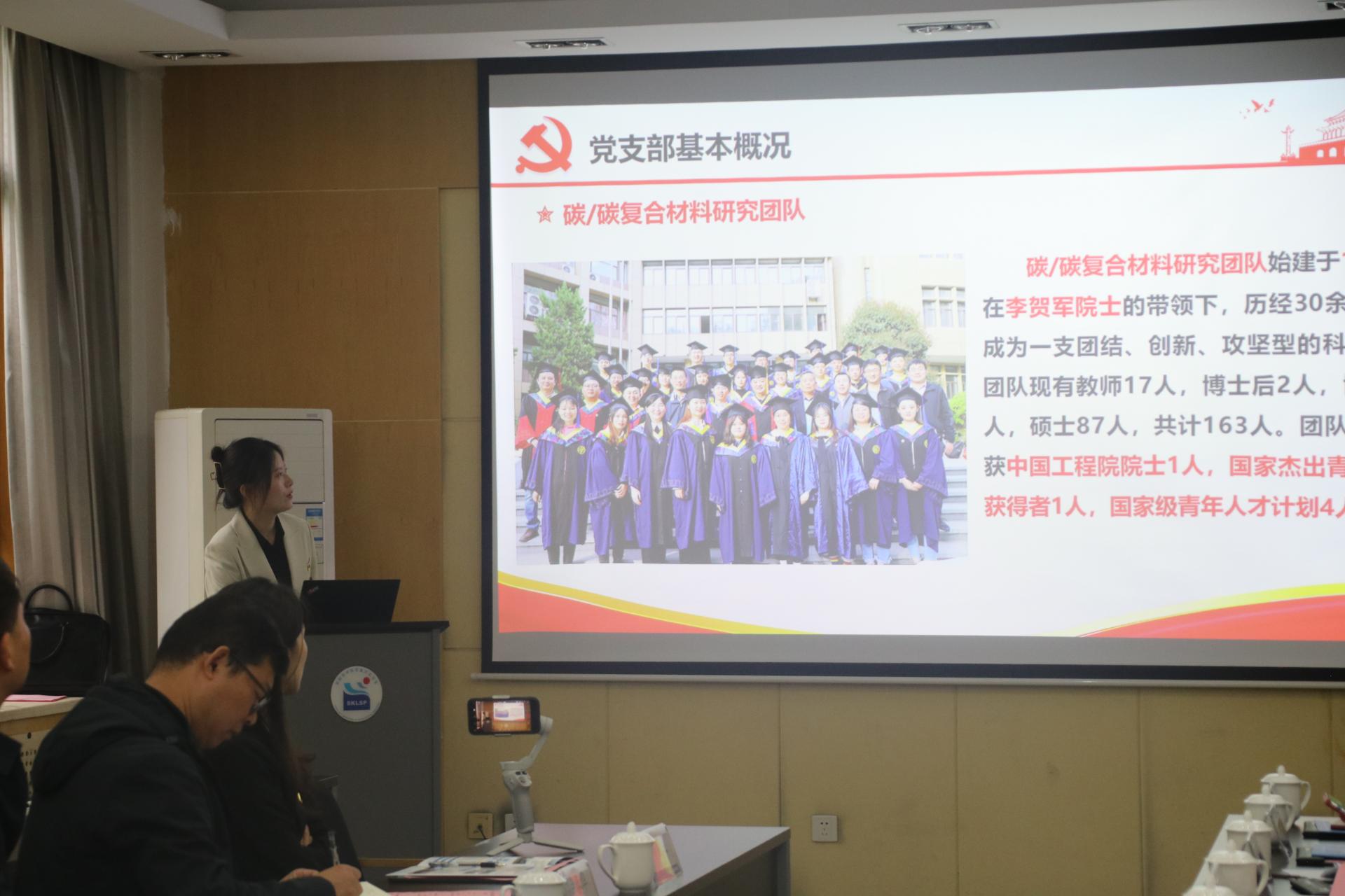 碳材料师生融合党支部副书记赵元肖从基本概况、品牌文化、特色活动、建设成果及展望四个方面介绍了碳材料师生融合党支部的建设情况。碳材料师生融合党支部是以博士生为主体的导师团队党支部,支部理念为“扎根西北,奉献国防,薪火相传,以枝带叶”,重点突出“传、帮、带”的品牌文化,探索建立 “党建+专业”、“党建+理论”、“党建+就业”的特色建设模式,组织开展十项特色活动,取得了丰硕的建设成果。
